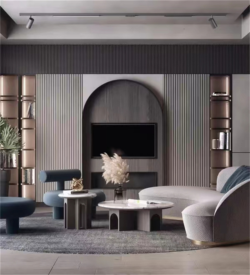 The overall unevenness of the wpc panel does not lose its aesthetic value. It can be well blended with various styles. As an embellishment, it can highlight its texture. In Chinese classical culture, it is important to be horizontal and vertical. WPC, which is extremely square and has regular rhythms, is also very beautiful when used in space ceilings.